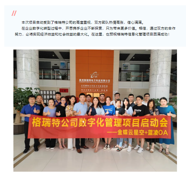 格瑞特公司数字化管理项目启动会 日期:2021-11-17 / 人气: / 来源:Kaisi 上一篇← 下一篇→ 推荐内容 Recommended 金蝶与华制智能缔结战略合作伙伴关06-30 相关内容 Related
